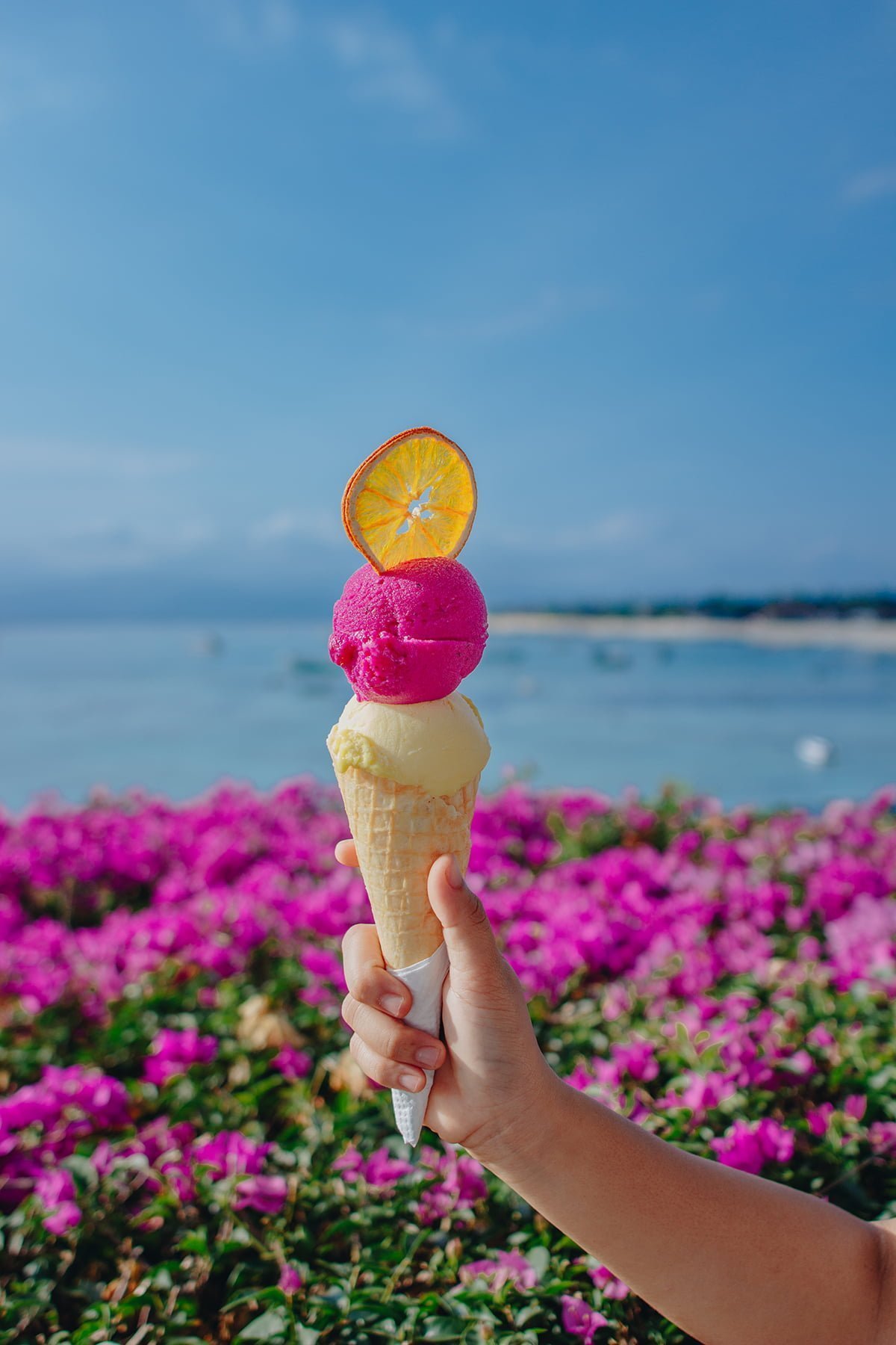 The very first seaside gelato parlour on Nusa Lembongan, strategically located right over the crystal clear turquoise blue sea, there is really no better view to enjoy a fresh gelato or homemade frozen yoghurt! On the way back from a surf, a dessert after enjoying a siesta lunch day at The Deck Cafe & Bar, or a sweet alternative to a nightcap after dinner at Muntigs Bar & Restaurant, everything is better with sprinkles!!! With special gelato flavors (just to name a few…) from the fuchsia pink dragonfruit to Oreo (with real Oreos obviously), coconut with fresh flakes of coconut, pistachio just like the Europeans do….and all the fruit sorbets from natural raspberry to mango to tropical….say WHAT?! AAAAAND the toppings. Don’t forget the toppings to make these more interesting! Naughty & nice are on the menu; gummy bears, sprinkles, mini Oreos, house-dried fruit, gogi berries, house-made chocolate sauce, and many other flavors we are going to keep secret until you come visit us! And it still gets better – our house-made frozen yoghurt! For those wanting to be a little healthier, we have this guiltless option with changing flavors – wow. House-made cones with the sweet smell wafting along the boardwalk dipped in chocolate and toppings…. “It’s not going to lick itself” as they say.